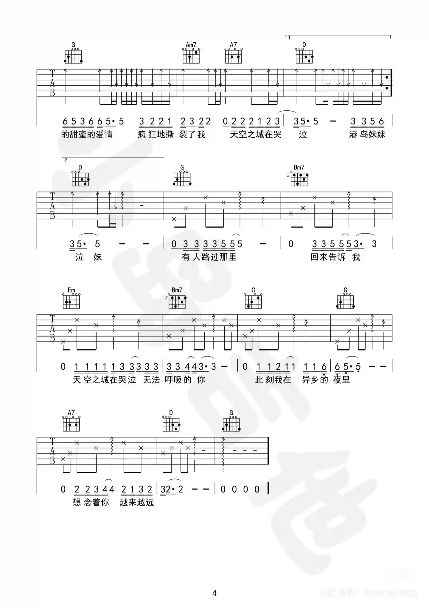 | 1 5(D/#F) 飛機飛過天空 天空之城 6 3 落雨下的黃昏的我們 4 1 此刻我在異鄉的夜裡 3 5 感覺著你忽明忽暗 1 3 我想回到過去 沉默著歡喜 6 3 天空之城在哭泣越來越明亮的你 4 1 愛情不過是生活的屁 2 5 折磨著我也折磨著你 4 1 港島妹妹 你獻給我的西班牙餡餅 2 5 甜蜜地融化了我 天空之城在哭泣 4 1 港島妹妹 我們曾擁有的甜蜜的愛情 2 5 瘋狂地撕裂了我 天空之城在哭泣